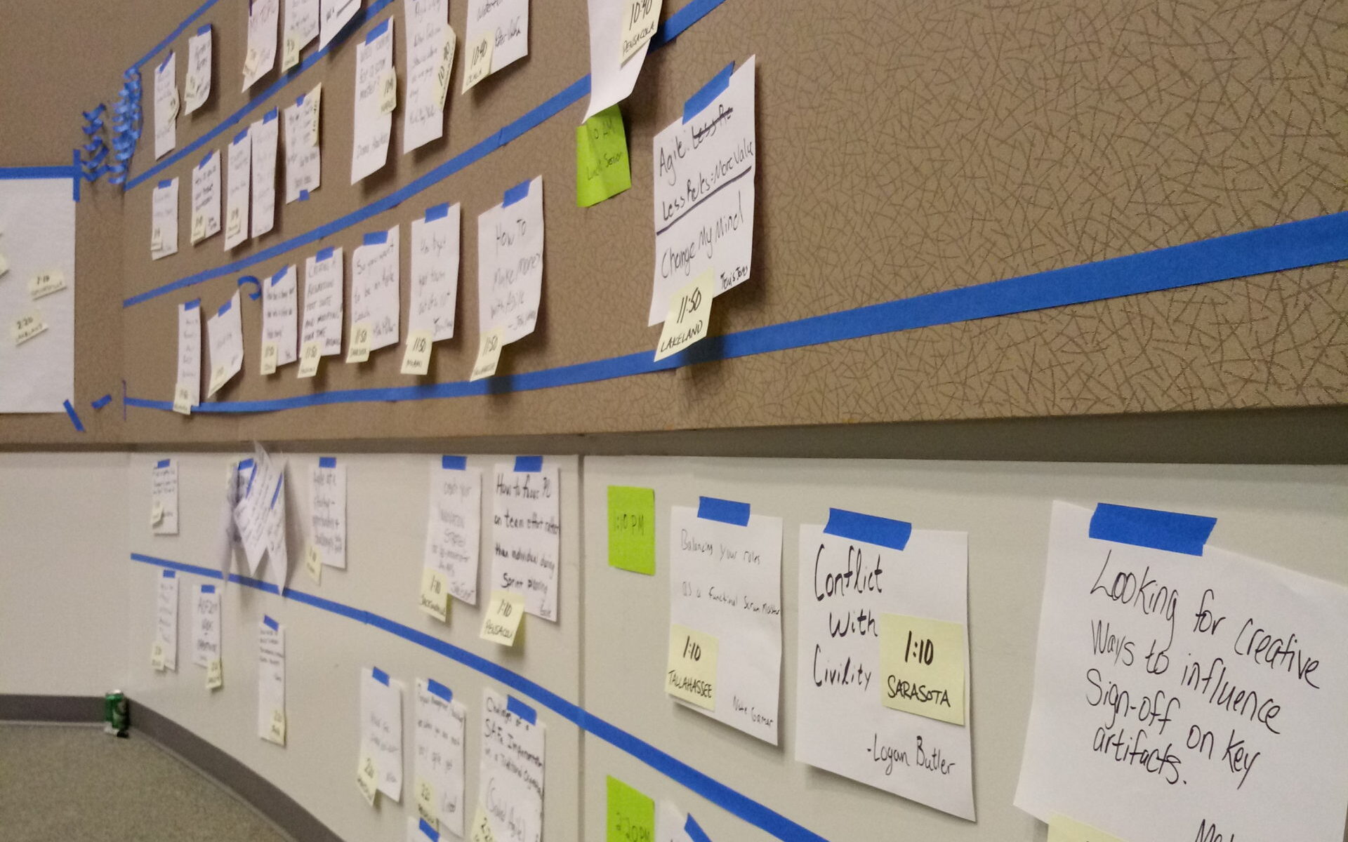 By the end of their meeting, all of the most important issues (for managers and everyone else, it turns out) were identified, discussed, documented and on the morning of day three were prioritized by the whole group, by voting. This self-organizing team of more than 100 people produced a prioritized “backlog” that everyone understood and was ready to go to work on, together.